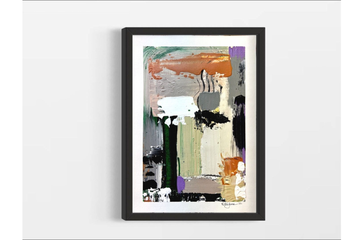 Originalt abstrakt maleri på uopspændt lærredsark i smukke farver.