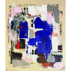 Abstrakt værk på lærred med akryl, blyant, kul og spray.