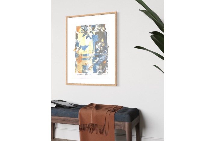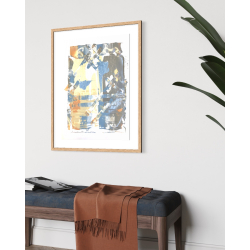 Værket er monteret i en massiv egetræsramme i størrelsen 50x70 cm.