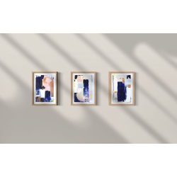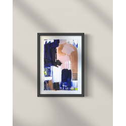 Værket er malet med akryl, spray, kul og fedtfarver på kraftigt naturfarvet papir.