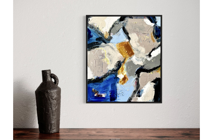 Smukt unika værk på opspændt lærred i størrelsen 60x70 cm.