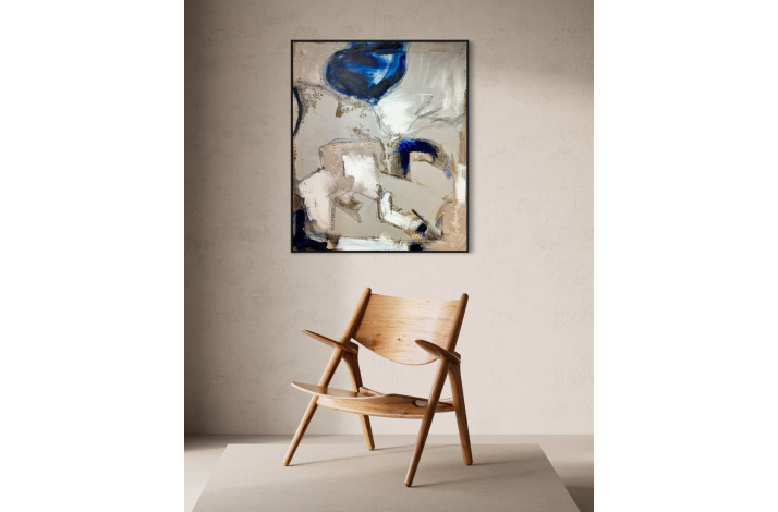 Abstrakt bestillingsværk i beton, akyl, kul og blyant