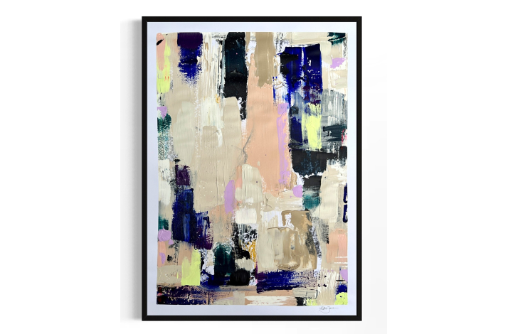 "Familiar Feelings" er et farverigt originalt maleri på papir i størrelsen 50x70 cm.